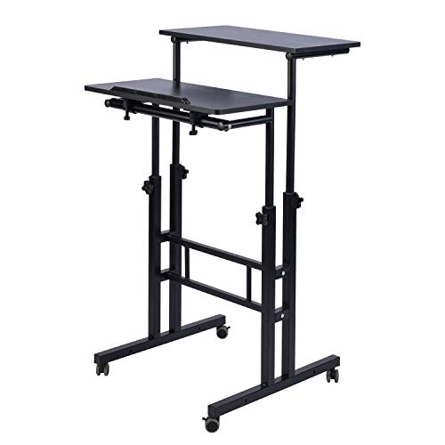 Aiz Mobile Standing Desk Adjustable Computer Desk Rolling Laptop Cart On Wheels Home Office Computer Workstation Portable Lapt